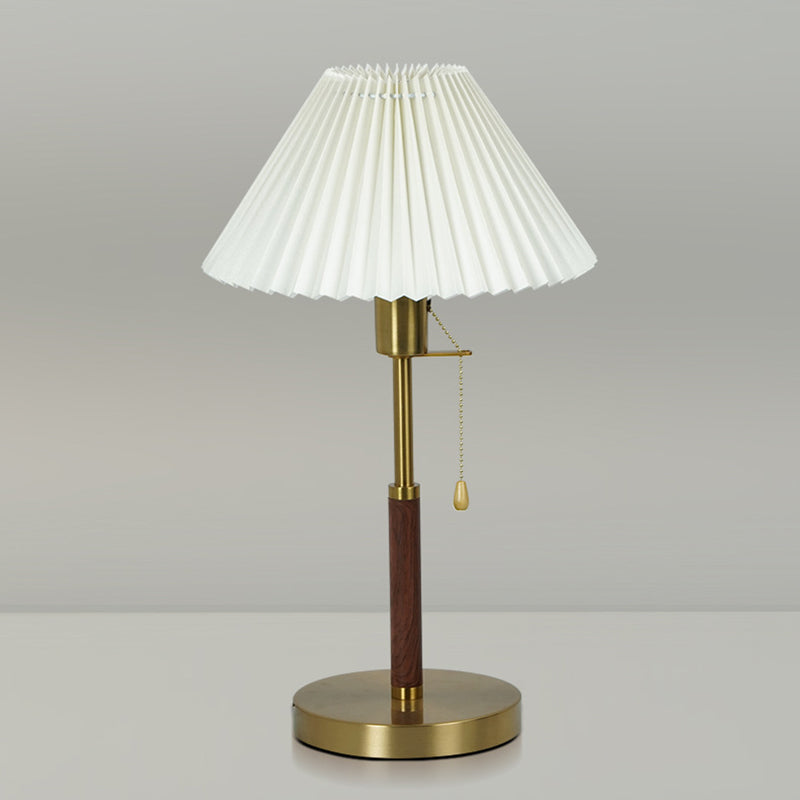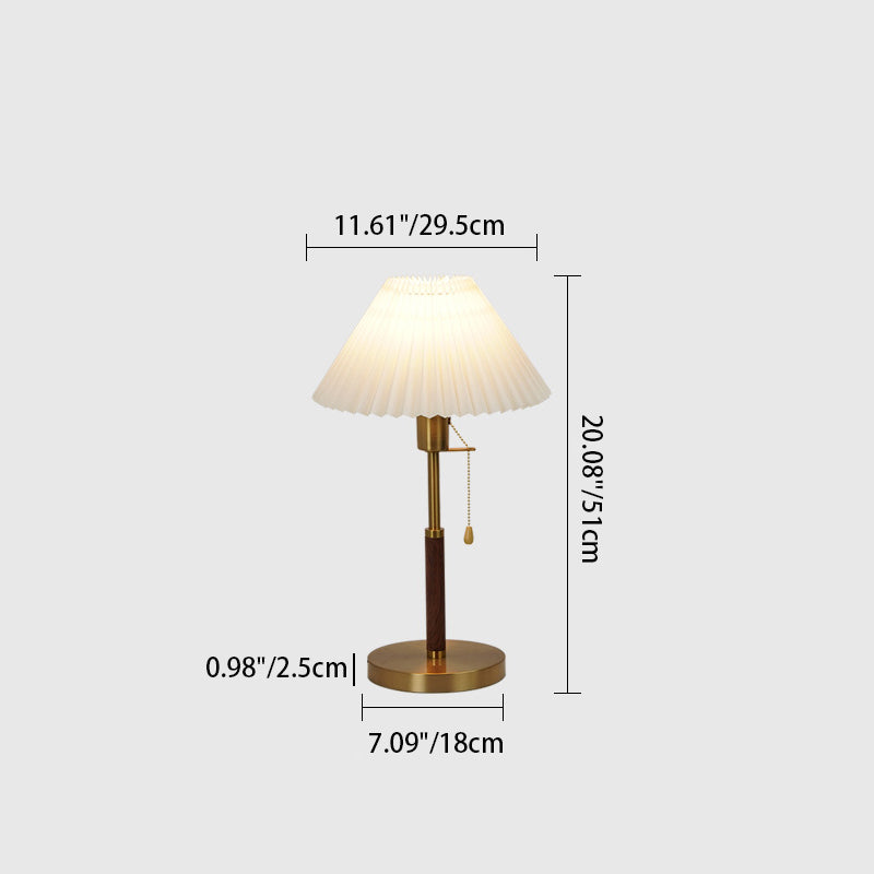 Traditional Vintage Round Table Pleated Iron Wood Fabric 1-Light Table Lamp For Bedroom