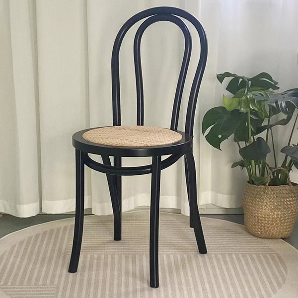 Traditional Vintage Round Wood Rattan Chair Backrest Armless For Living Room