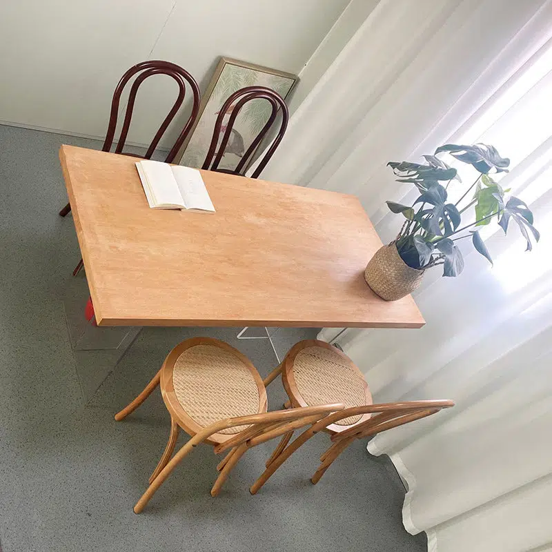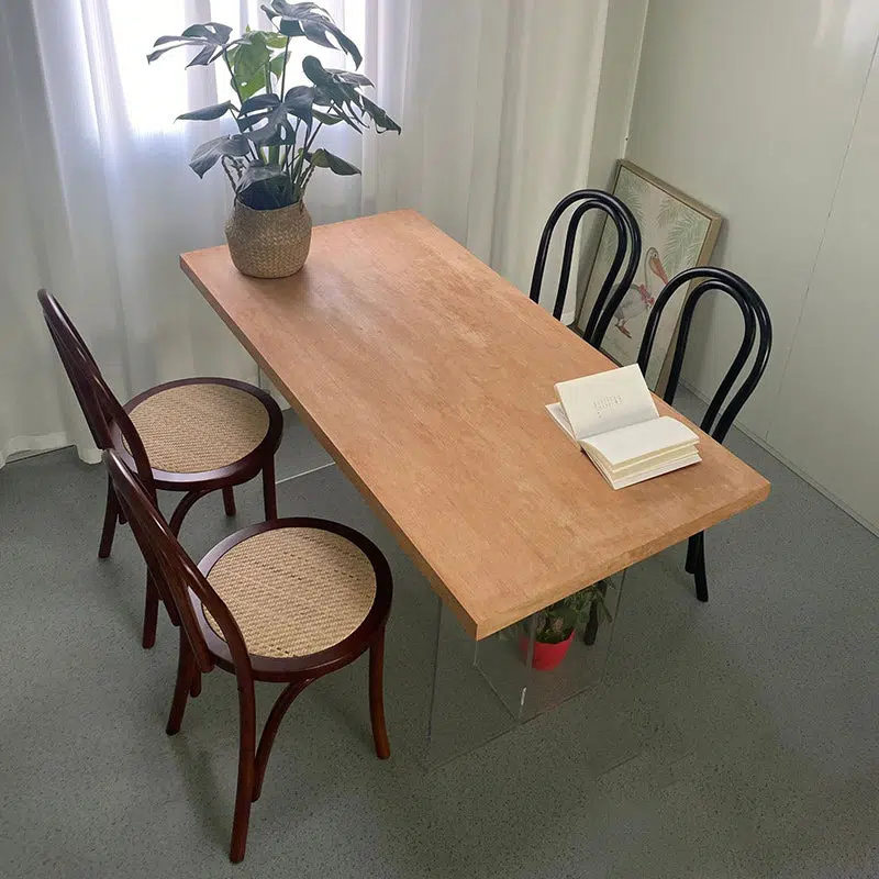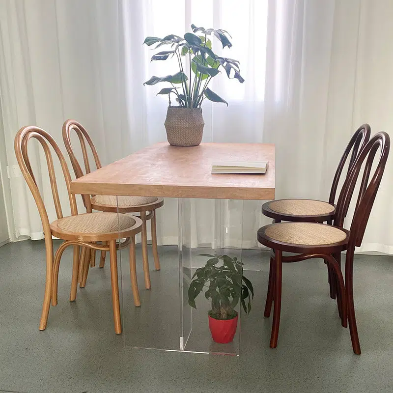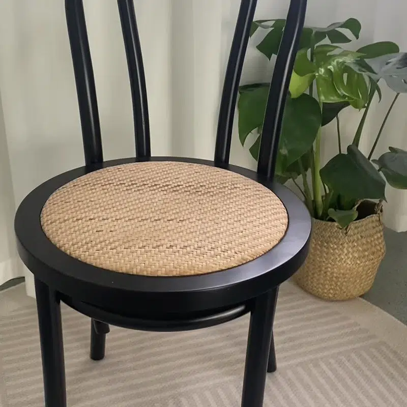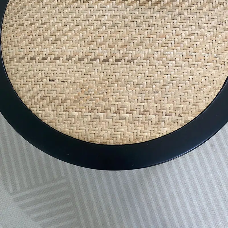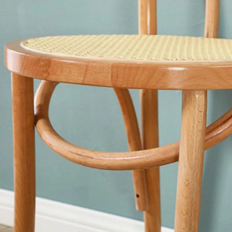 Traditional Vintage Round Wood Rattan Chair Backrest Armless For Living Room