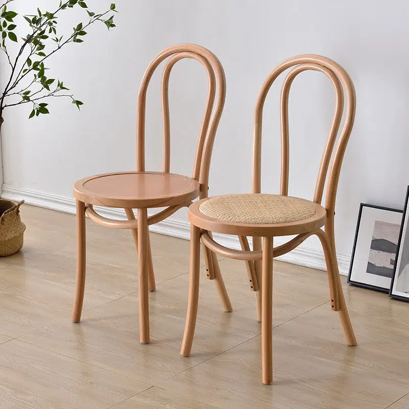 Traditional Vintage Round Wood Rattan Chair Backrest Armless For Living Room