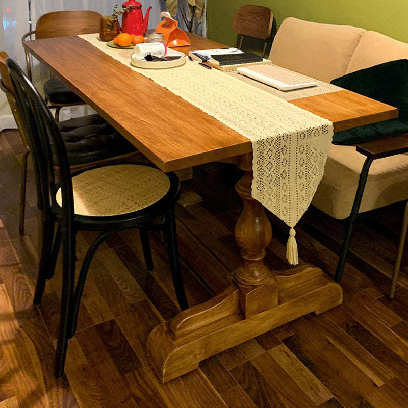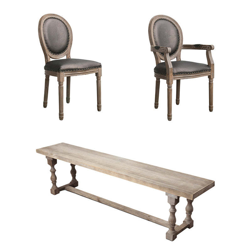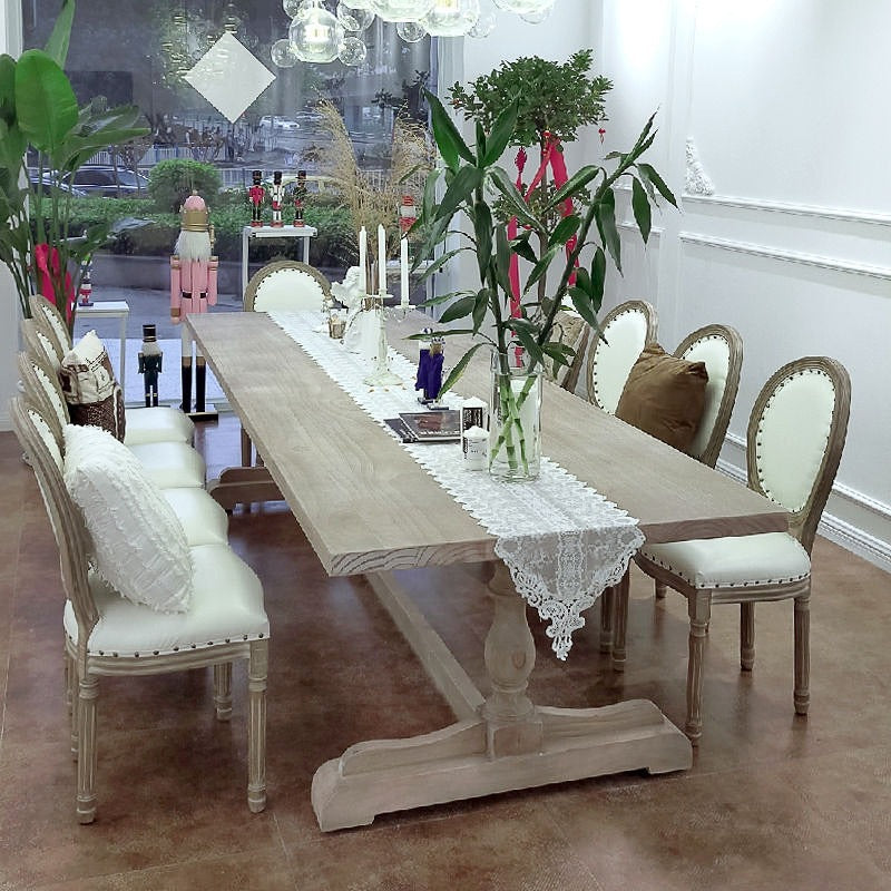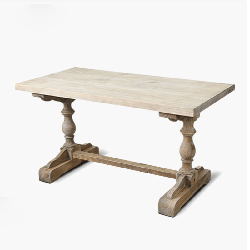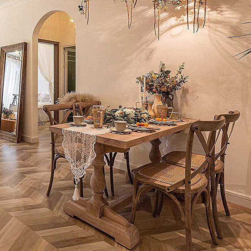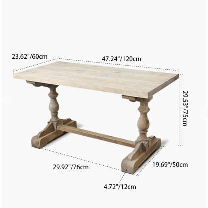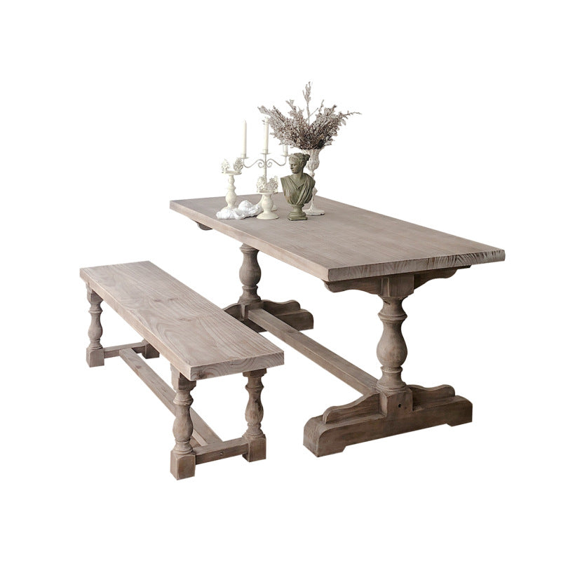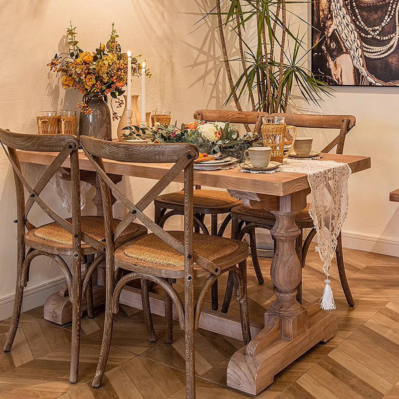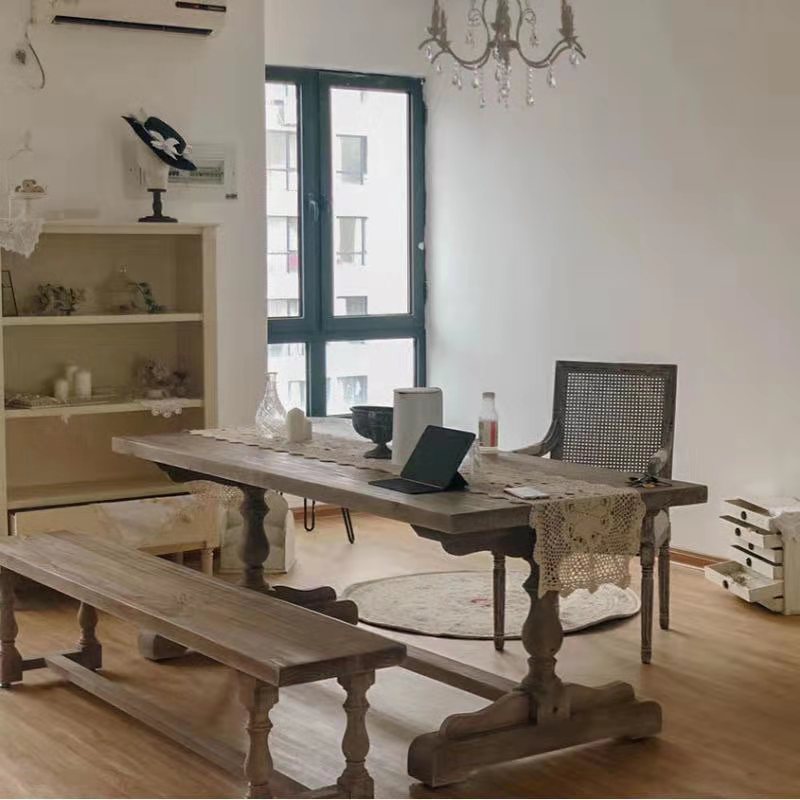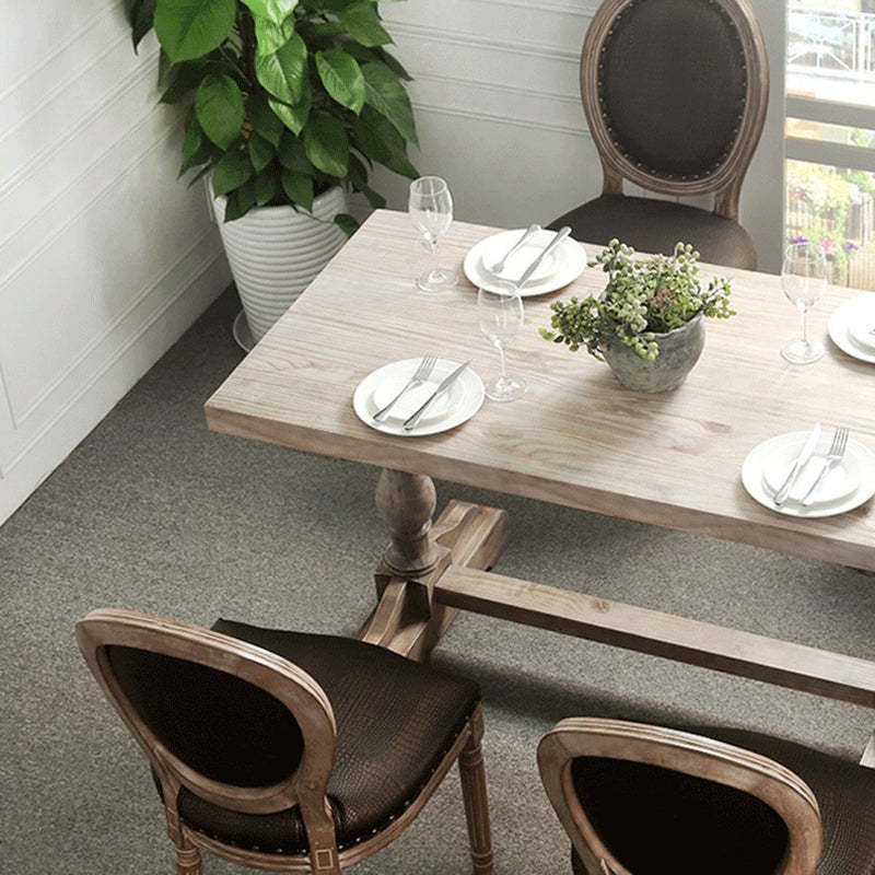 Traditional Vintage Solid Wood Rectangular Column Dining Table & Chair Set For 4/6 Seats