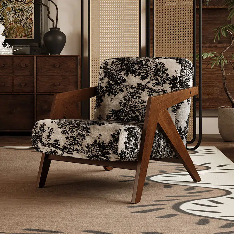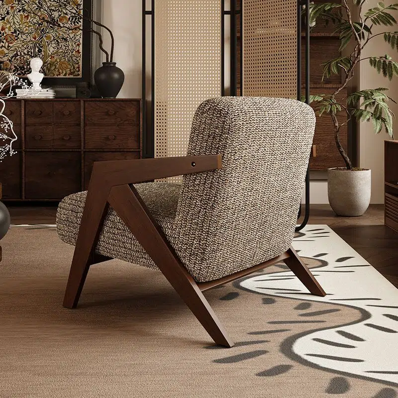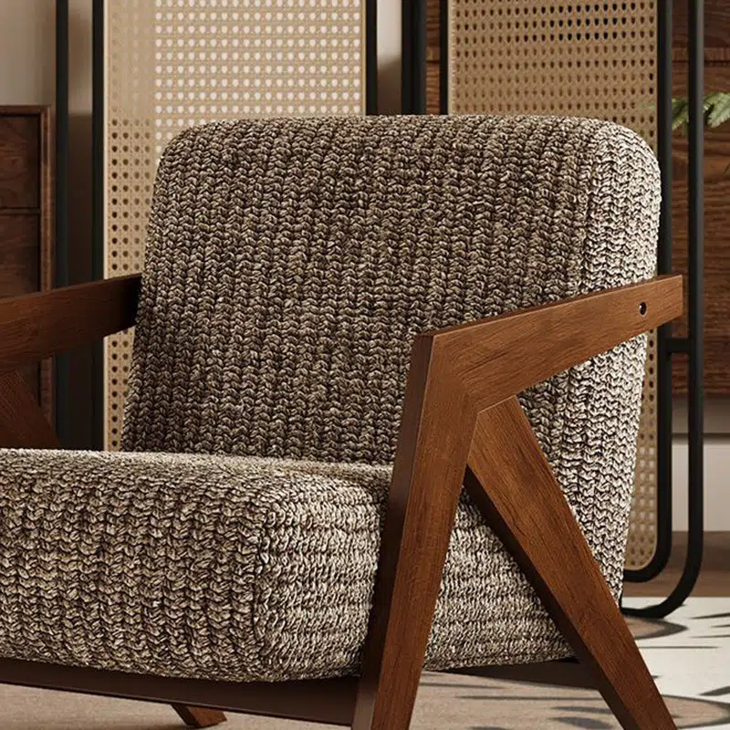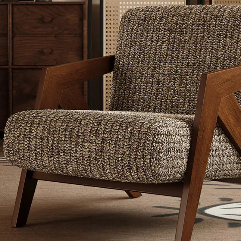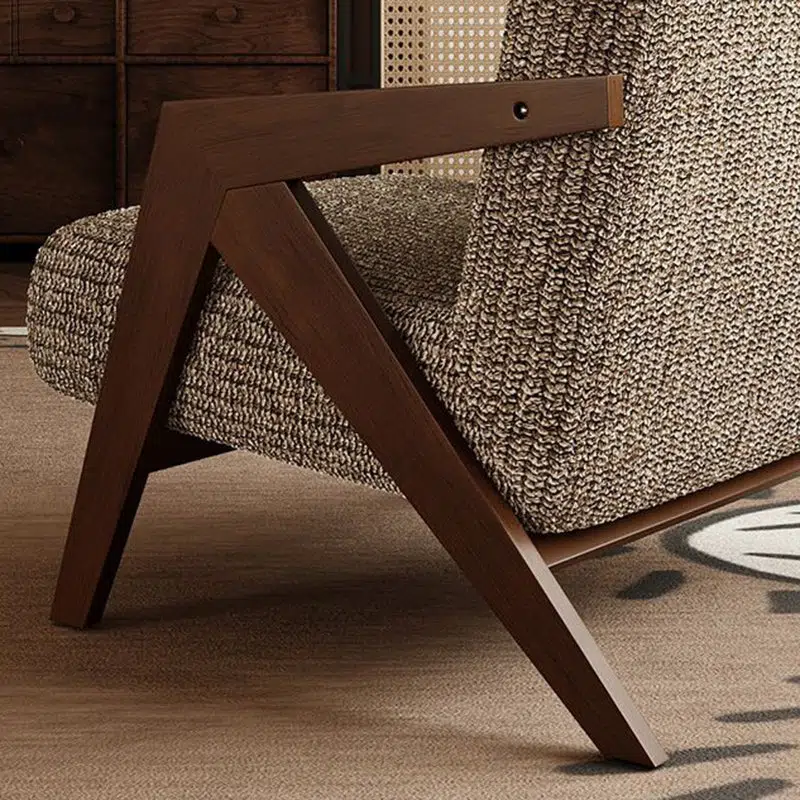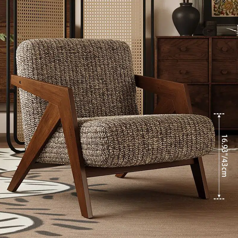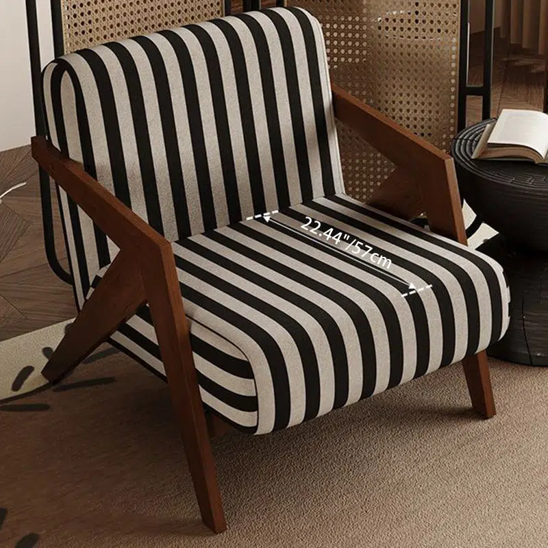 Traditional Vintage Square Wood Fabric Accent Chair Backrest Armrest For Living Room