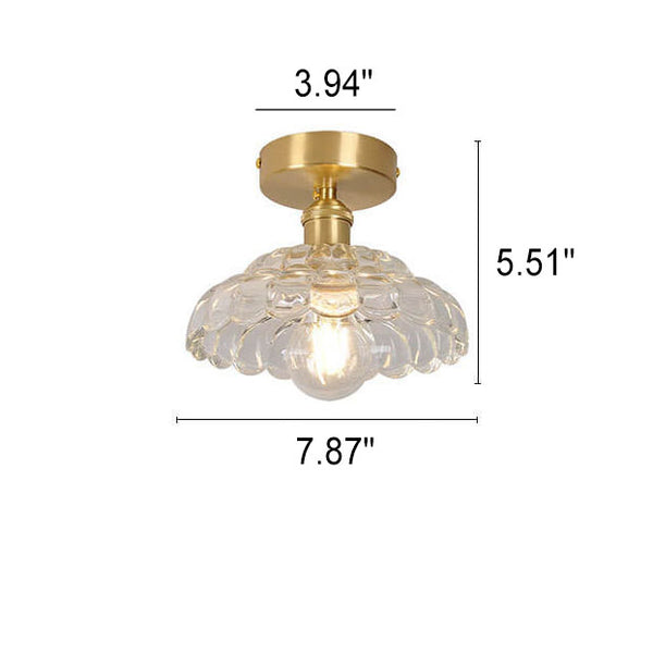 Vintage Brass Glass Dome 1-Light Semi-Flush Mount Ceiling Light