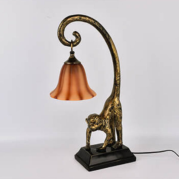 Vintage Creative Resin Monkey Glass Cone 1-Light Table Lamp