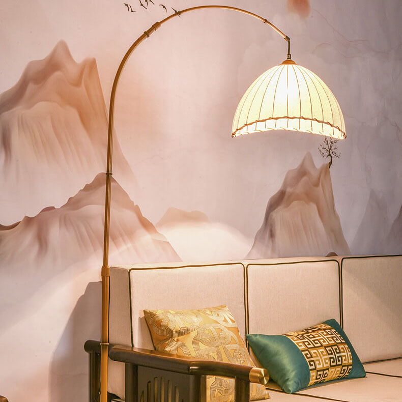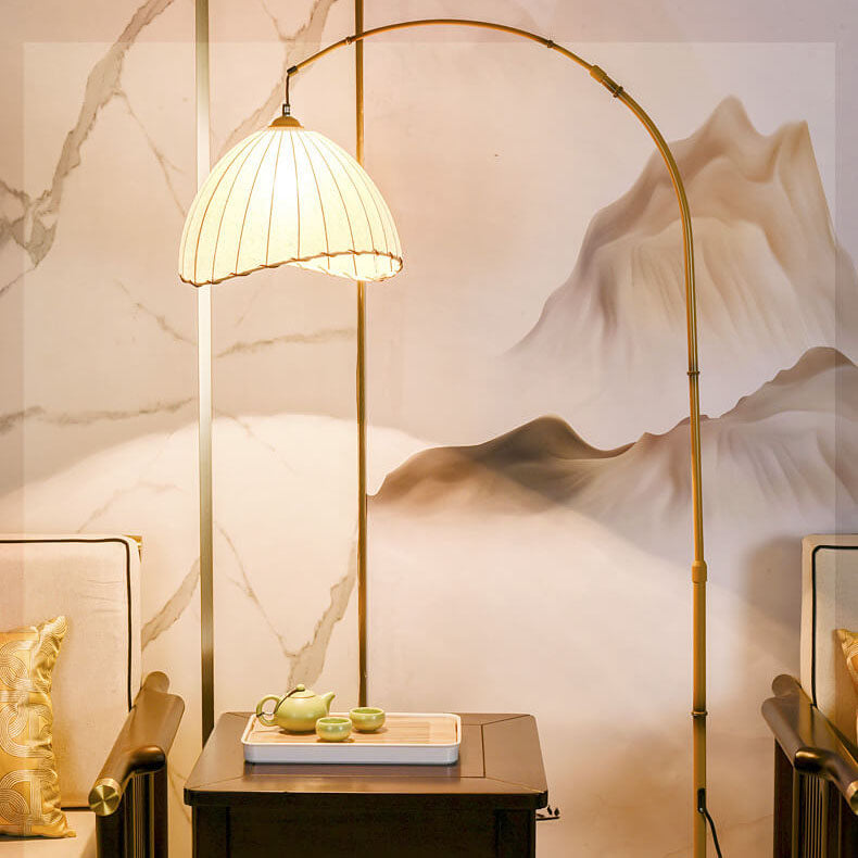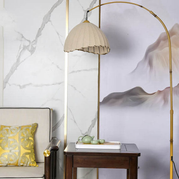 Vintage Fabric Marble Fishing Imitation Bamboo Rod 1-Light Standing Floor Lamp