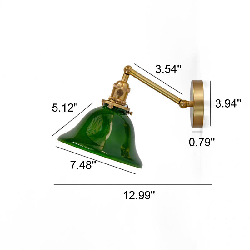 Vintage Green Glass Brass 1-Light Wall Sconce Lamp