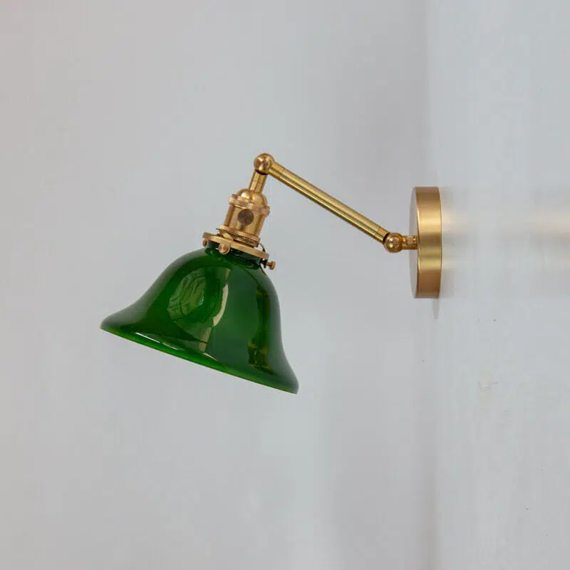 Vintage Green Glass Brass 1-Light Wall Sconce Lamp