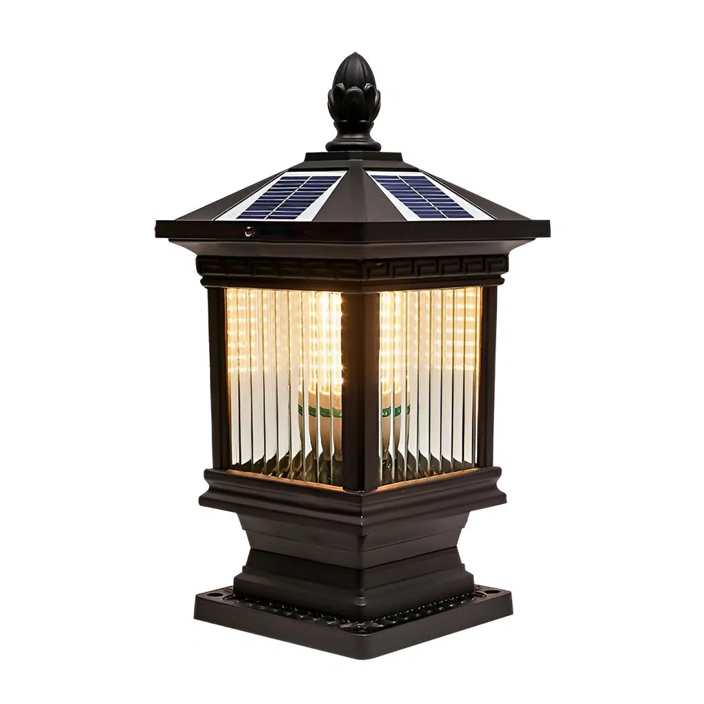 - This solar pillar light made of die-cast aluminum is rustproof and waterproof. It is matched with a high transmittance glass lampshade. which is bright and warm through light transmission. and can also create a stylish and elegant atmosphere.