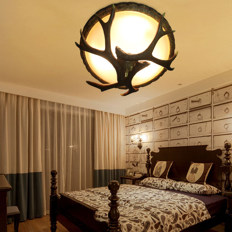 Vintage Industrial Antler Resin Glass Round 2/3/5 Light Flush Mount Ceiling Light