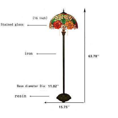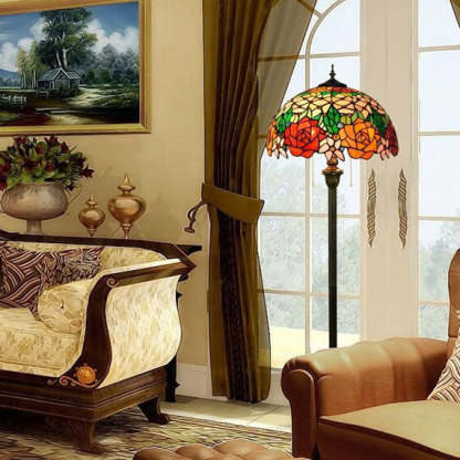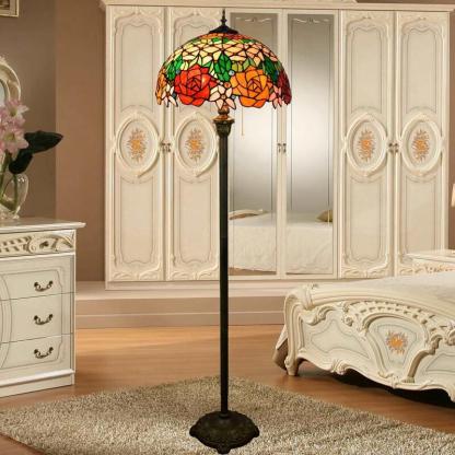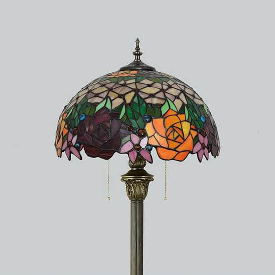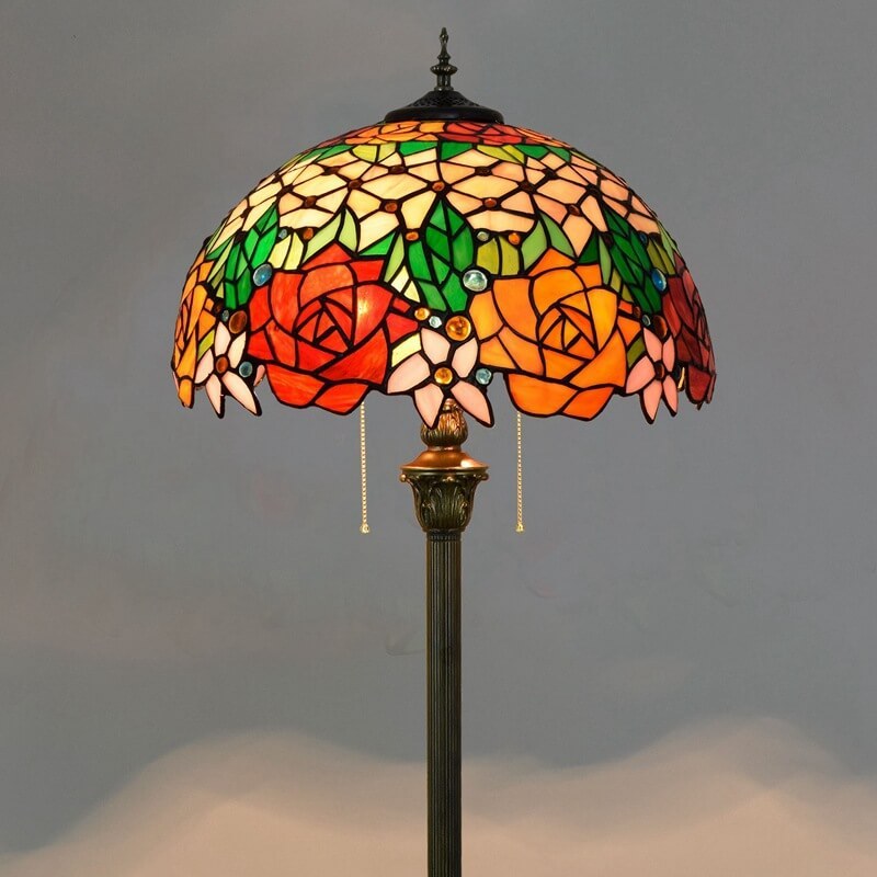 Vintage Tiffany Stained Glass Rose 2-Light Standing Floor Lamp
