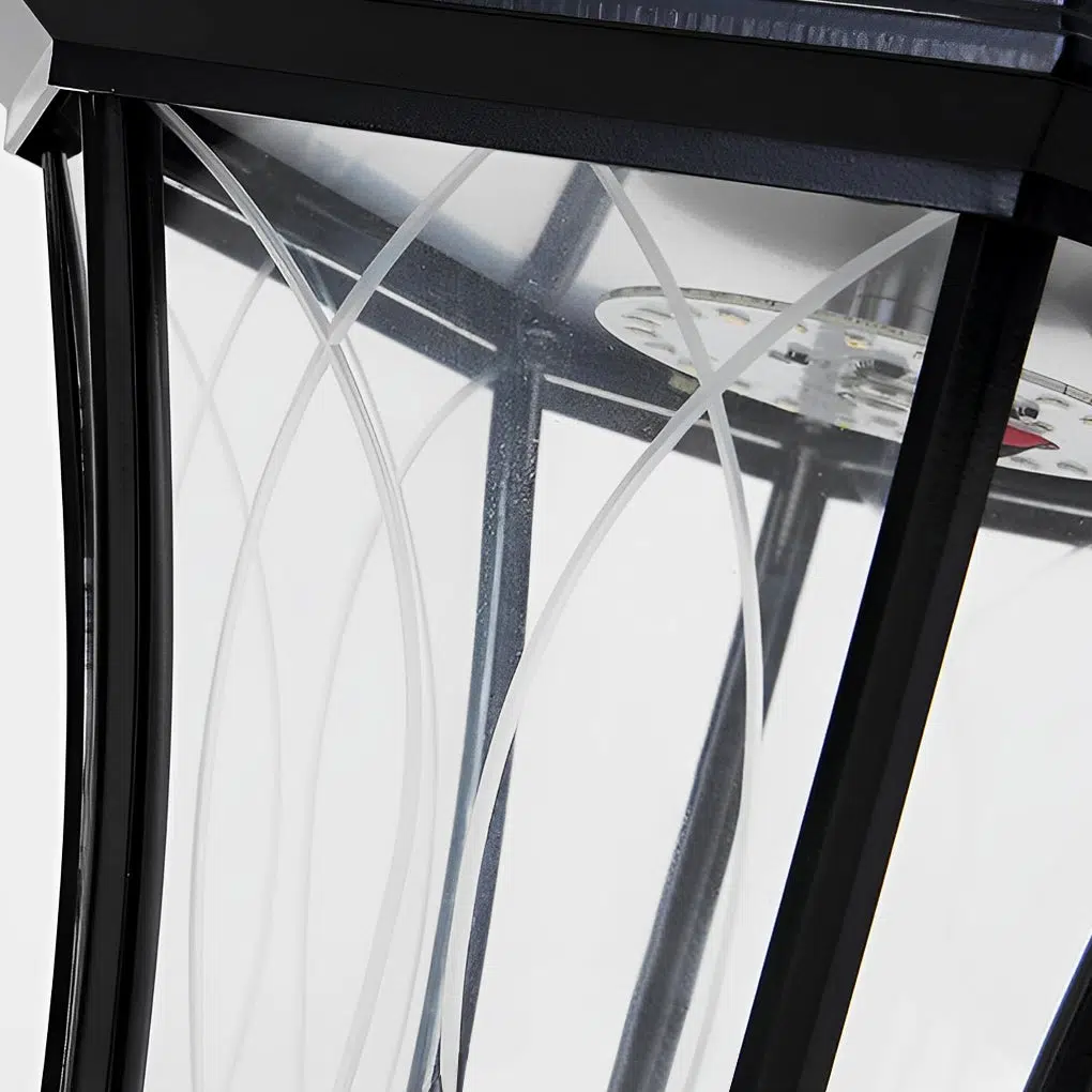 - Ingenious combination of glass and metal makes this simple outdoor lamp have an artistic style. exuding an elegant and generous atmosphere.