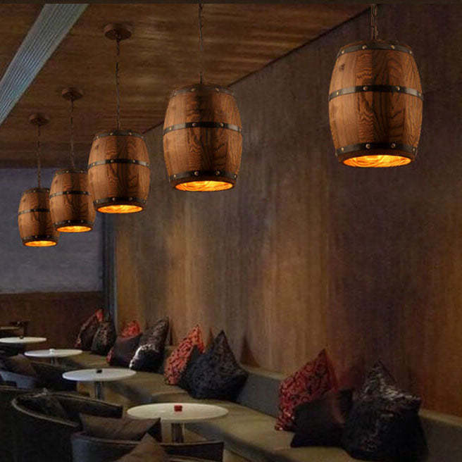 Vintage Wooden Wine Barrel 1-Light Single Barrel Pendant Light