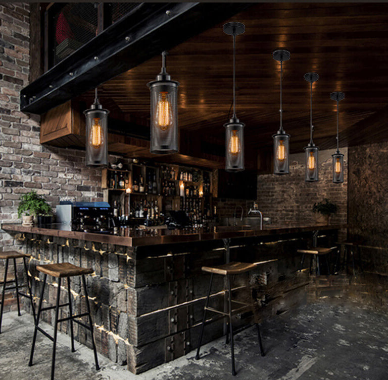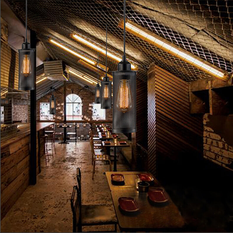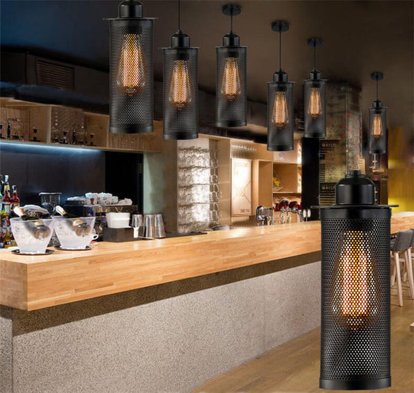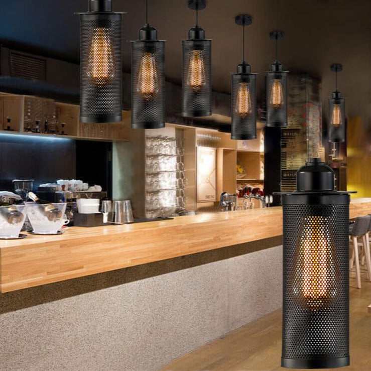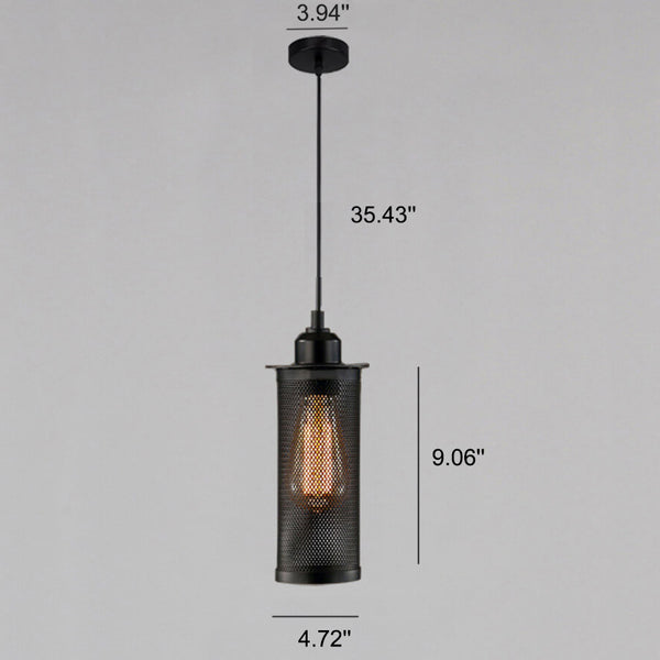 Vintage Wrought Iron Metal Mesh Cylindrical 1-Light Pendant Light