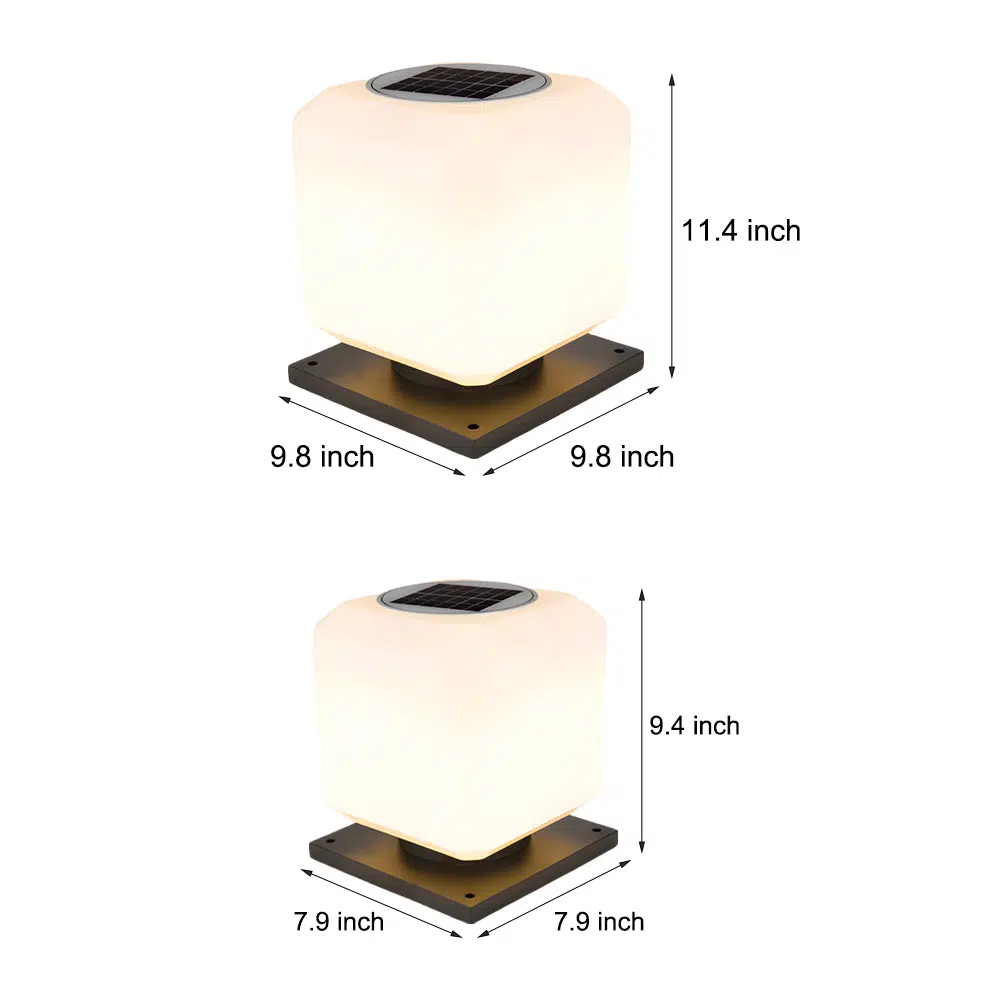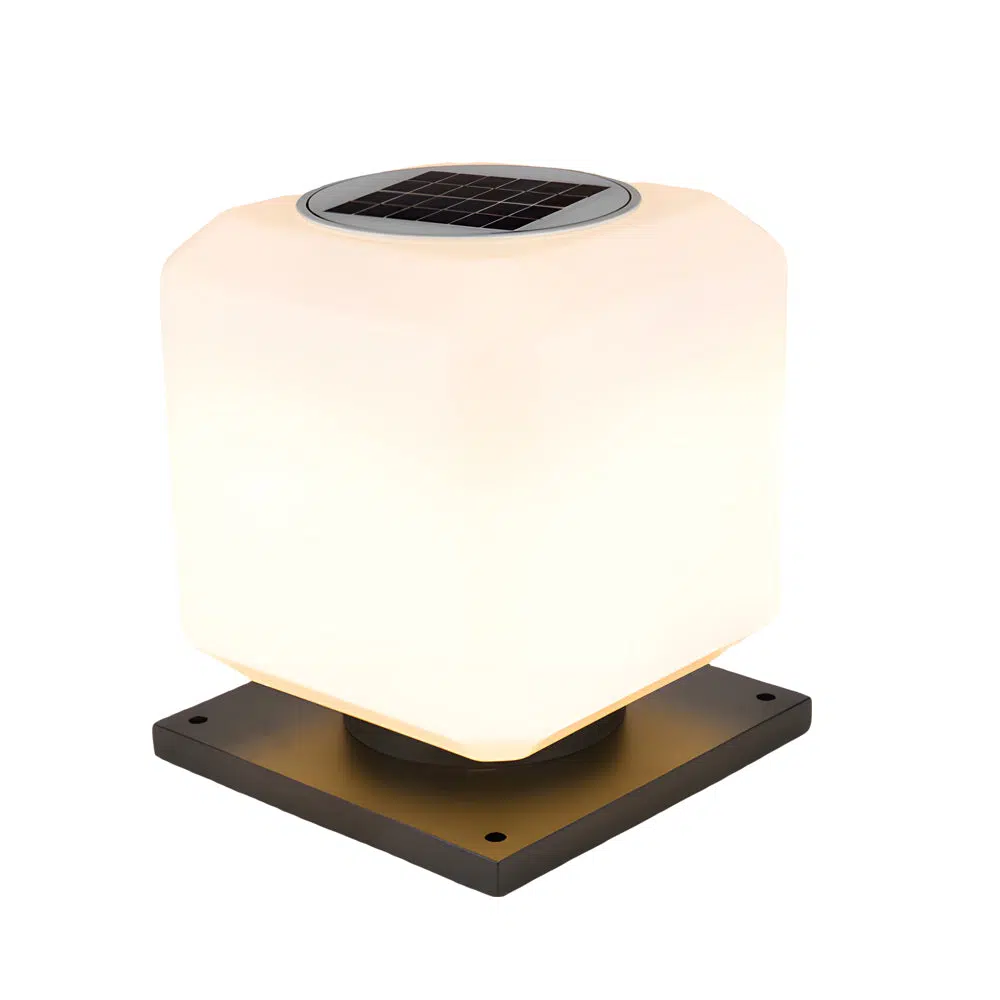 • Add a stylish new twist to your outdoor lighting with this modern acrylic cube LED outdoor post light. Available in two power supply methods for you to choose from. hard-wiring and solar power supply. this outdoor pier mount light features a square cube silhouette complete with a white hue acrylic shade and black metal finish base.