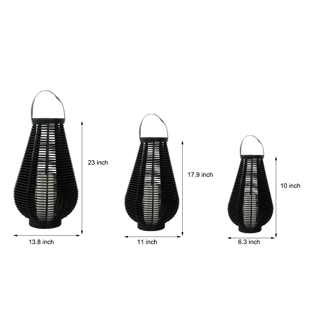 Waterproof PVC Weaving Rattan LED Black Modern Portable Solar Lanterns